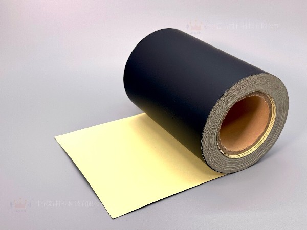 中冠哑黑PET不干胶材料采用哑光黑色PET薄膜为面材,表面呈现低反光的哑光质感,兼具视觉美感和功能性。面材具有一定的耐刮擦、防水、防油以及抗化学腐蚀性能,适合在多种环境下使用。其稳定的物理特性和柔和的视觉效果,使其在功能性与设计需求兼备的标签应用中表现出色。